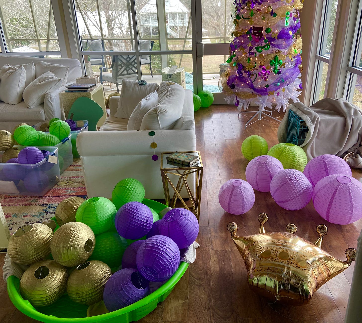 As all this is shaping up, I am checking the parents’ Facebook group at my boy’s future university to possibly meet folks. A couple of pals to commiserate with will be amazing. I am so excited to start realizing our future. The hubs and I are already talking about all the things we will do as far as empty nesters and it’s a lot. He is a really good photographer and wants to spend more time on that; I want to make art and costumes and do all the shenanigans New Orleans and the Gulf Coast have to offer, like seven hour cocktail lunches and Mardi Gras parades. My glue gun is ready; I’ve just got to get through graduation, the remodel(s), and getting the boy ensconced at school. 💜💛💚