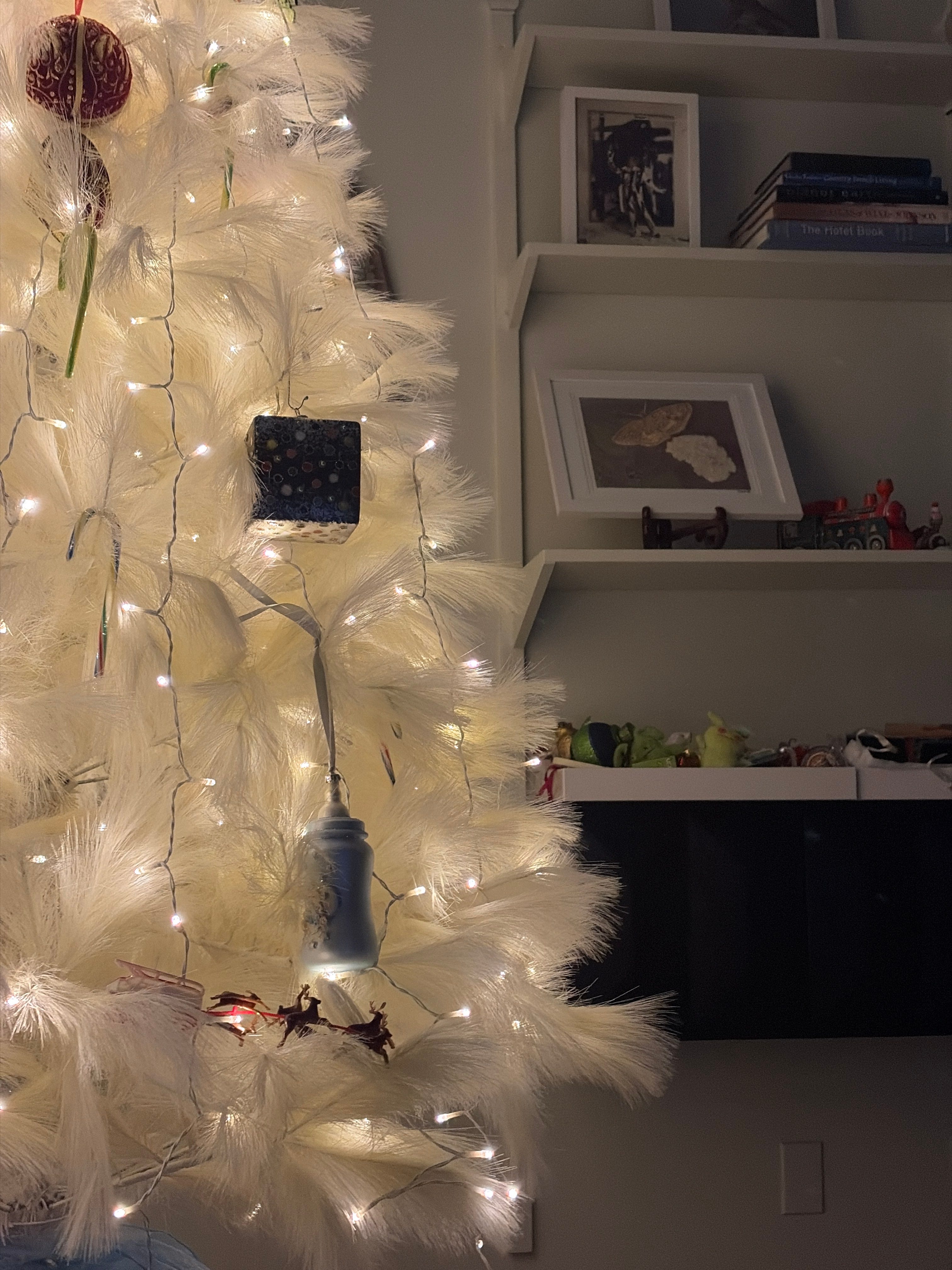 I’m so tired but wired. We worked relentlessly all day, with the last workman leaving around 3:30. We then set about getting the place clean and livable. Roast is brining and Whole Foods catering sides in my fab new kitchen. We managed to get the pampas Christmas tree assembled, lit and will add more ornaments as the day goes on. We keep it up until Twelfth night, so it’s worth the trouble. I’m feeling so good about getting the tv set up so we could watch Charlie Brown as some sort of observance of the reason we are rushing around so hard. There are presents under the tree. Finally my Chancellor’s list student (Mmhm.❤️💙❤️) can relax at his new gaming desk and I can enjoy a lot less stuff to put away (we have staged the condo and stored what we are moving to the Bay), a great new walk in closet, comfy rugs and kitchen. Now I will watch a movie and finally get a little sleep before all the fun starts. Pray I can figure out how my new oven works!